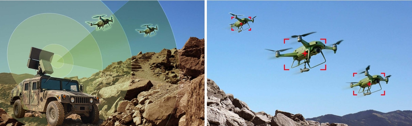 인공지능과 고급 센서 퓨전 기술의 결합을 통해, 복잡하거나 무질서한 환경에서도 드론과 다른 비행 물체를 높은 정확도로 구분할 수 있습니다. 모바일 플랫폼 특유의 기동성 덕분에 광범위한 작전 지역을 신속하게 커버할 수 있으며, GPS 및 실시간 위치 추적 시스템을 통해 정밀한 지오펜싱(Geo-fencing)과 위치 기반 위협 대응을 지원합니다.