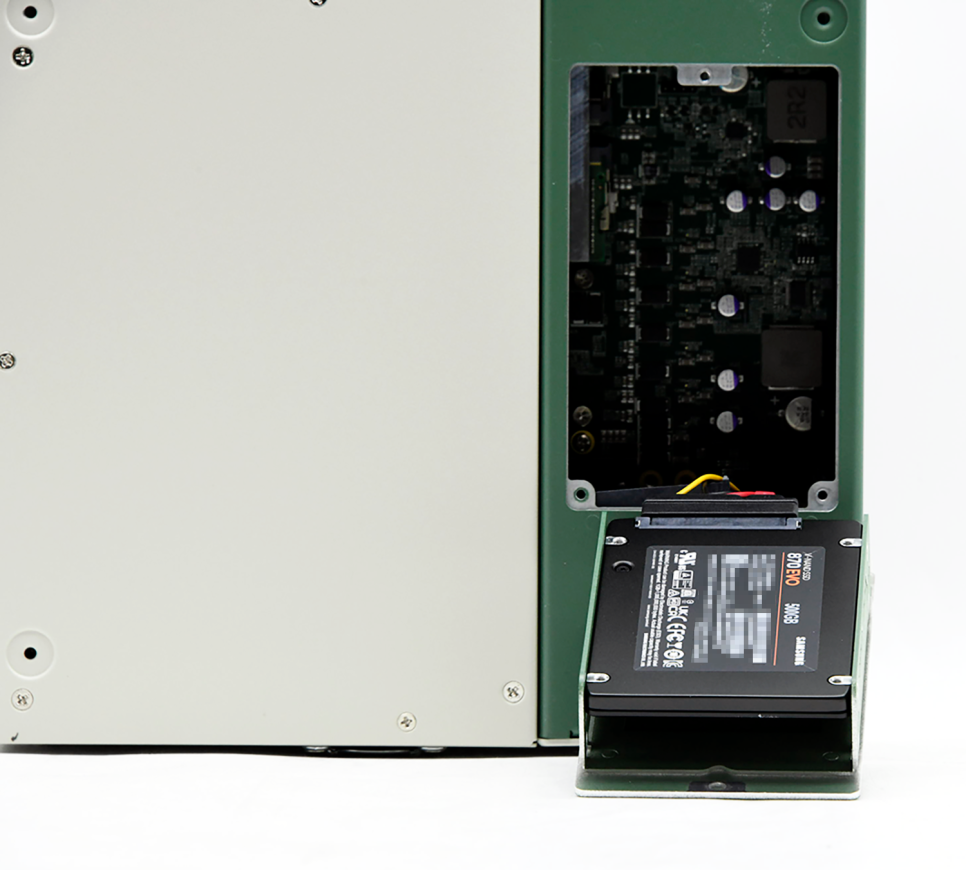 Nuvo-9006DE-POE 에는 2.5인치 SATA 방식 SSD를 손쉽게 꺼낼 수 있도록 PC 하단부분에 트랩도어가 있습니다.