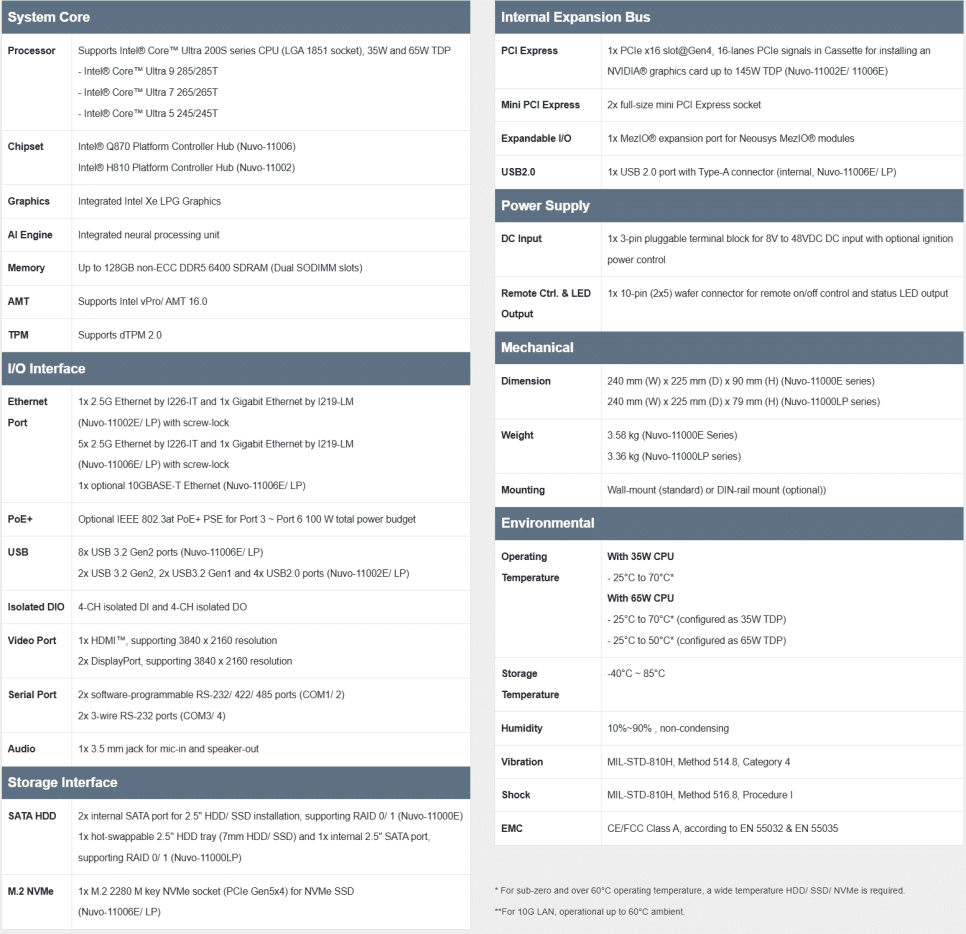 Nuvo-11000 Series의 주요 사양