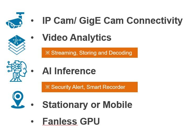 NRU-120S는 원활한 IP 카메라 연결, H.264/H.265 비디오 스트림 트랜스 코딩, 중요한 추론용 TFLOPS, 실시간 통찰력 시각화를 통합하는 원스톱 지능형 비디오 분석 솔루션입니다. NRU-120S는 산업용 GigE 카메라 지원 외에도 검사, 스마트 농업 및 자동화된 창고에서 딥 러닝 비전 솔루션을 채택할 수 있습니다. 마지막으로 내구성과 저전력 설계를 갖춘 NRU-120S는 먼지가 많은 공장에서부터 주야간 온도 차가 큰 도로변까지 열악한 환경에서 에지 AI를 지원합니다.
