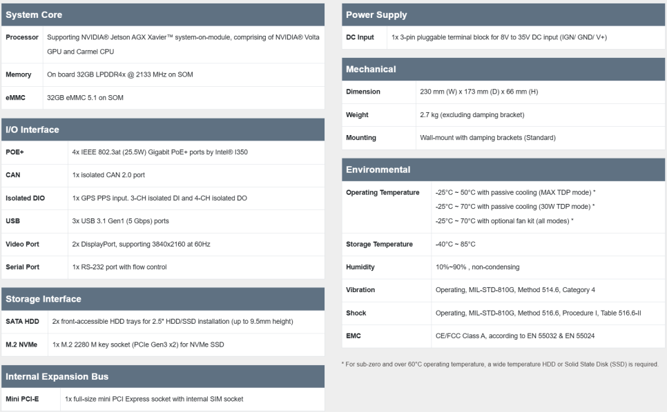 ✅ NVIDIA® Jetson AGX Xavier™ 탑재