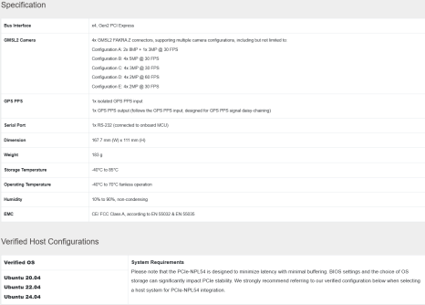 PCIe-NPL54는 4× GMSL2 카메라 입력과 GPS PPS 동기화를 단일 카드에 통합한 산업용 비전 확장 카드입니다. -40°C~70°C의 가혹 환경에서도 안정적으로 동작하며, 자율주행·로봇·스마트 팩토리의 멀티 카메라 실시간 처리 요구를 충족합니다. 표준 PCIe Gen2 x4 인터페이스와 검증된 호스트 구성을 통해, 대규모 카메라 시스템을 정확하고 일관된 타이밍으로 운용할 수 있습니다.