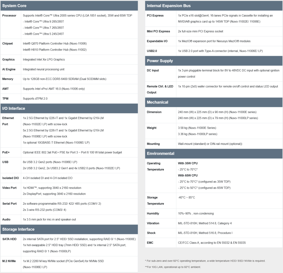 오늘은 최신 Intel® Core™ Ultra 200S 시리즈 프로세서를 지원하며, 확장성과 성능, 안정성을 모두 갖춘 Neousys의 Nuvo-11000 Series를 소개드립니다.