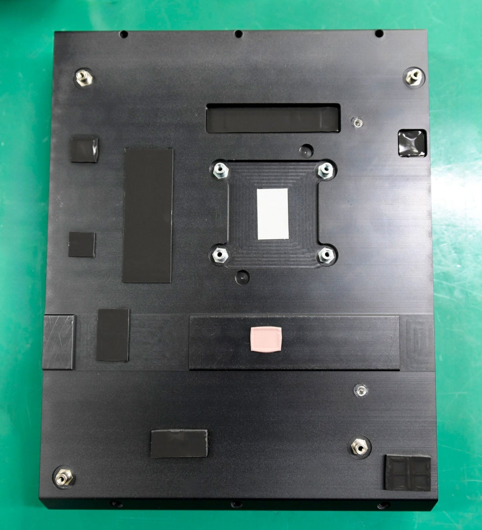 Nuvo-10003은 팬리스 타입으로, 히트싱크에 CPU와 마더보드의 전체적인 열전도 방지를 위해 서멀 패드 (방열 패드)가 부착되어 있습니다. 비맥스테크놀로지에서 취급하고 있는 팬리스PC의 특징으로 열이 발생하는 구성 요소 (CPU, PCH, GbE, Power Choke 등)를 히트싱크에 직접 닿을 수 있게하여 열 방출이 훨씬 효과적입니다.