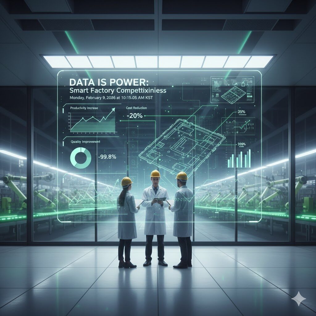 스마트 팩토리에서는 공정 상태, 설비 정보, 품질 결과가 모두 데이터로 축적됩니다.