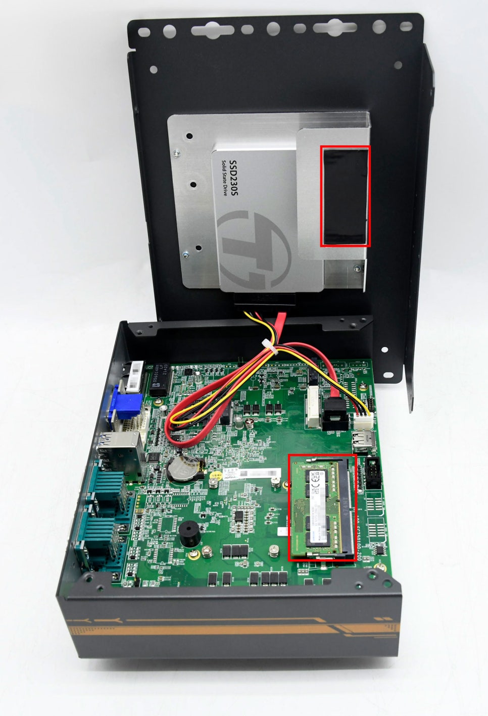 Nuvo-7501의 하단에는 2.5" HDD/SSD를 설치할 수 있는 브라켓이 있으며, 이번에 2.5" SSD 256GB를 장착하였습니다.