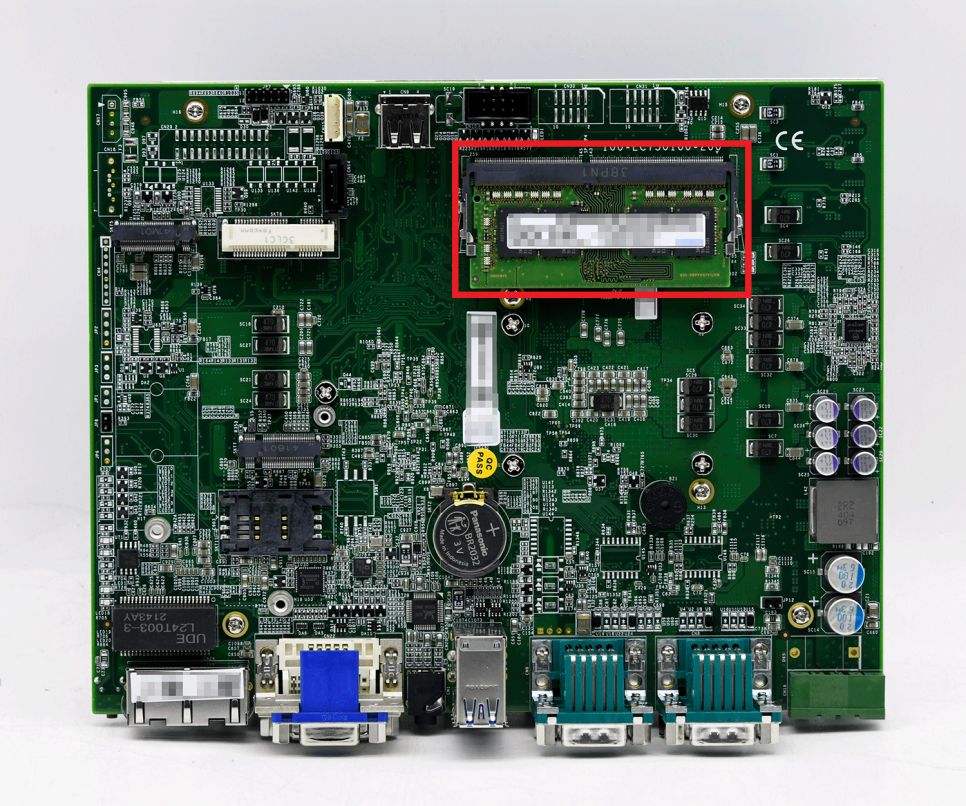 Nuvo-7501은 최대 32GB DDR4를 지원하는 단일 메모리 SO-DIMM 슬롯(빨간색으로 표시)이 있습니다.
