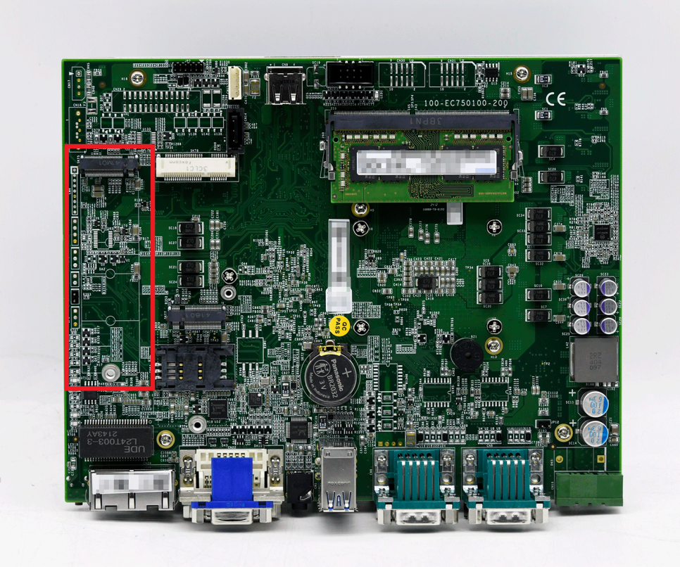 Nuvo-7501에는 M.2 2280 SATA SSD를 설치할 수있는 M.2 2280 슬롯(SATA 신호 전용-빨간색으로 표시)이 있습니다.